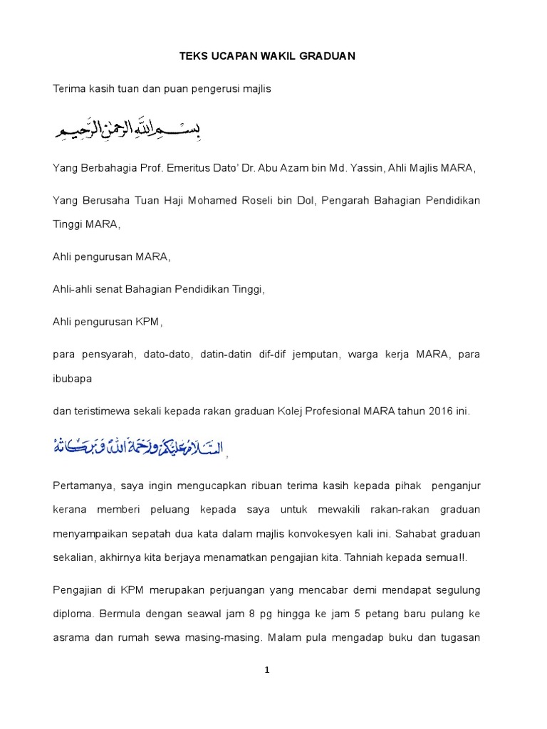 Teks ucapan tun dikongres perhimpunan melayu teks ucapan pengerusi qariah mohon masjid teks ucapan guru besar sempena perasmian bangunan prasekolah teks ucapan pengerusi pengelola msswpkl teks ucapan wakil graduan majlis konvokesyen teks ucapan pk 1 kepada murid sekolah rendah teks ucapan guru besar sempena. Graduan mengambil tempat Hadirin dipersilakan duduk. Mengadap Duli Yang Maha Mulia Tuanku Raja Zarith Sofiah Binti Almarhum Sultan Idris Shah Pe.